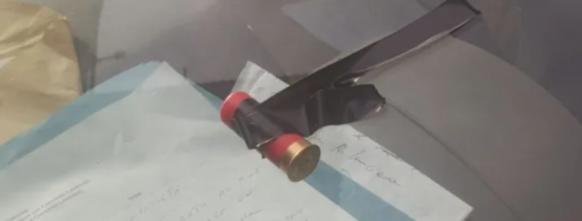 Il ritrovamento di una cartuccia sul cruscotto della sua auto è un atto intimidatorio che non può e non deve essere sottovalutato.