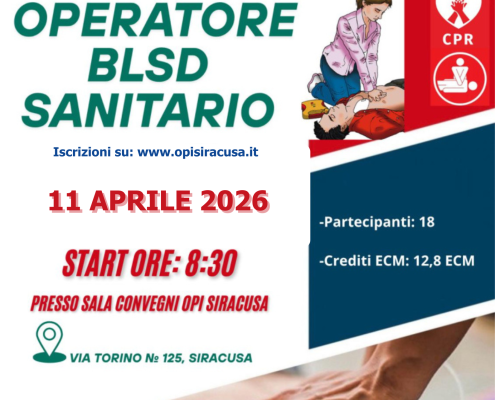 BLSD Sanitario-ECM 12,811 Aprile 2026Il corso ha un costo di 25 euro per gli iscritti OPI Siracusa…Continua a leggere https://www.opisiracusa.it/wp-content/uploads/2026/03/BLSD-11-APRILE.png 2245 1587 Paolo Pirreco https://www.opisiracusa.it/content/uploads/2022/02/logo_opi_siracusa.png Paolo Pirreco2026-03-02 14:09:462026-03-02 14:08:12BLSD Sanitario-ECM 12,8